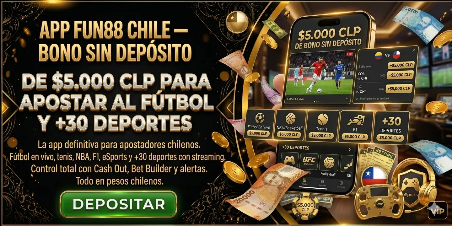 Fun88 Chile no es solo un casino — es una casa de apuestas deportivas online con cobertura completa del fútbol chileno, mercados profundos por partido, cuotas competitivas y herramientas avanzadas como Cash Out, Bet Builder y streaming en vivo. Con el bono sin depósito de $5.000 CLP, podés explorar todo eso sin arriesgar tu propio dinero: apostá al próximo clásico, probá el mercado de goles o experimentá con las apuestas en vivo — todo con saldo gratis.